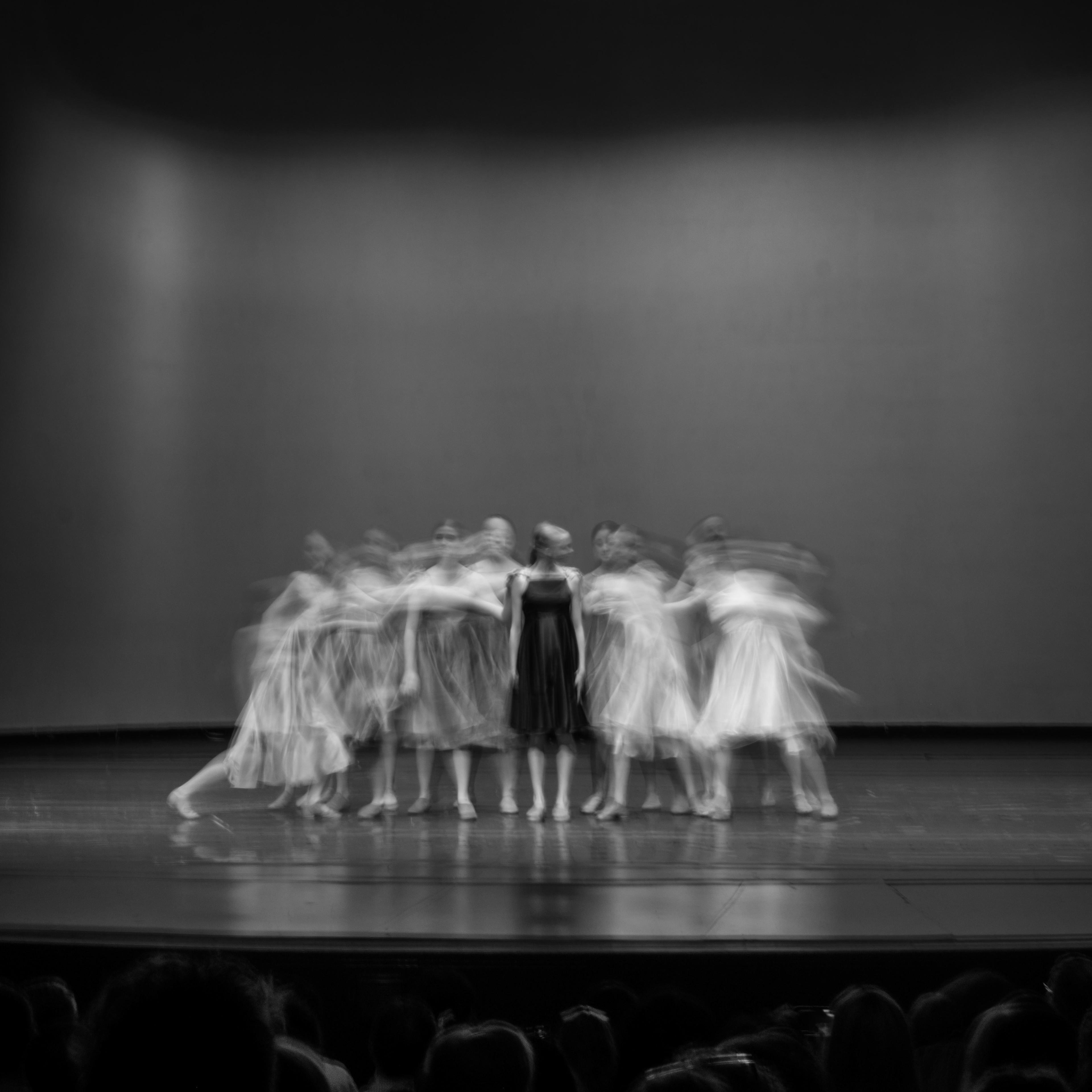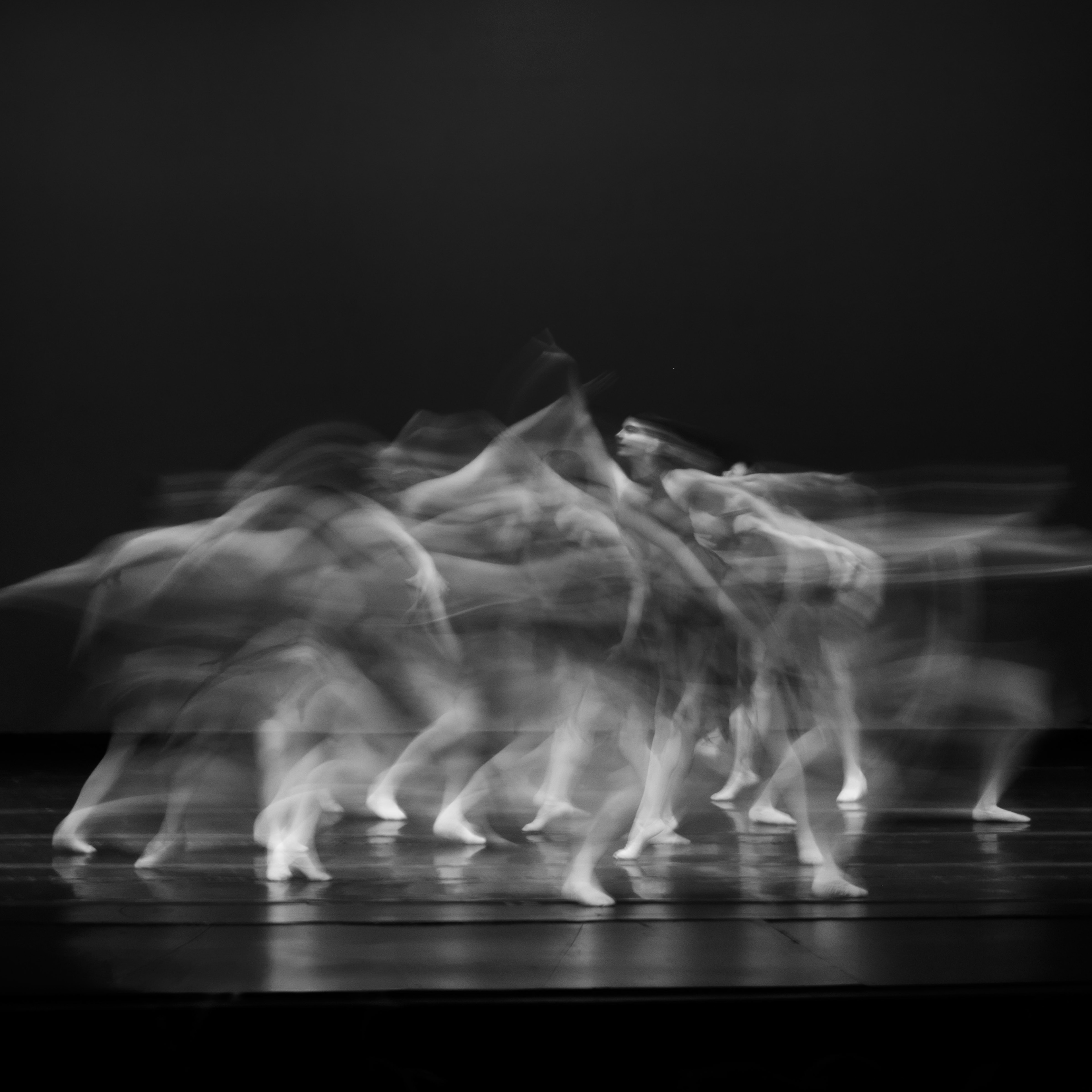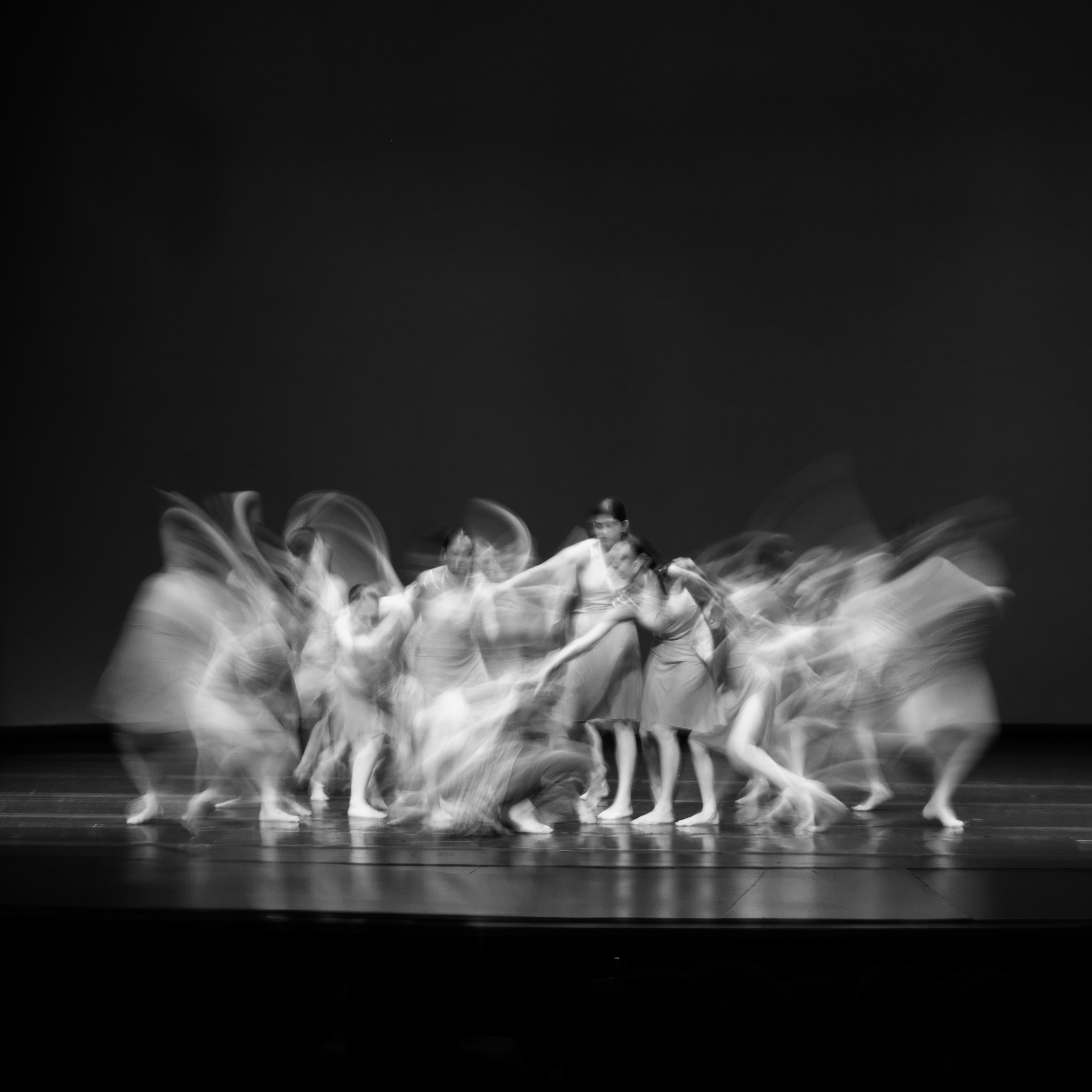 A series of three photographs capturing a group of dancers in motion. Shot with a slow shutter speed: The result is a visual celebration of rhythm, fluidity, and the ephemeral beauty of dance.